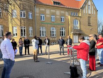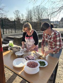 Im Dorfkern von Zscherndorf, genauer gesagt auf dem Schulhof der Grundschule An den Linden, steht ein neuer Gemeinschaftsbackofen und dieser verbreitete am 27.03. einen Duft von frischem Brot und Flammkuchen. Frau Wolff, Schulleiterin unserer Grundschule, hatte alles vorbereitet, während der Ofen auf Temperatur gebracht wurde - dies dauert schon ein paar Stunden. Die Gäste waren gut gelaunt und genossen sichtlich den Nachmittag am fertiggestellten Ofen.