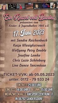 Das Kinder- und Jugendballett 1965 e.V. aus Sandersdorf präsentiert am 17. Juni 2023 ein Kessel voll Buntes! Viele Künstler sind mit Gesang, Tanz und Comedian dabei. Eine freche, witzige und vielseitige Show!
