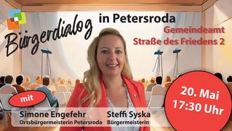 wir laden Sie herzlich zum offenen Bürgerdialog der Ortschaft Petersroda am Dienstag, 20.05.2025 um 17.30 Uhr in das Gemeindeamt Petersroda (Straße des Friedens 2, 06809 Sandersdorf-Brehna) in Form eines „runden Tisches“ ein.
