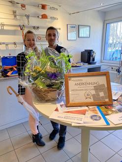 Zum 30-jährigen Jubiläum gratulierte Bürgermeisterin Steffi Syska Werkleiter Ralf Winkler, bekam durch ihn Einblicke in die verschiedenen Produktbereiche der Niederlassung und wünschte für die Zukunft weitere erfolgreiche Jahre in Brehna.