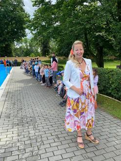 Steffi Syska, Bürgermeisterin der Stadt Sandersdorf-Brehna, eröffnete am 31. Mai um 10 Uhr im sommerlichen Outfit gemeinsam mit Ortsbürgermeister Mario Willer die diesjährige Saison des Volksbades Roitzsch. Ebenfalls ins kühle Nass traute sich Jens-Uwe Böhme, der Sportlehrer der Sekundarschule Roitzsch, dem auch einige Schüler folgten. Hier können sie für das Sportabzeichen schwimmen üben – eine tolle Möglichkeit für die Schülerinnen und Schüler der Sekundarschule "Adolph Diesterweg" in Roitzsch!