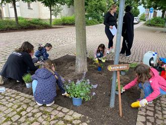 Die ersten Baumbeete in unserem Stadtgebiet sind angelegt: Am Freitag, den 31. Mai 2024 bedankte sich Bürgermeisterin Steffi Syska bei den Kindern der Kita Sonnenschein in Ramsin und bei dem Hort Brehna für die tatkräftige Unterstützung der Grünpflege unserer Stadt. Für die Übernahme der Pflege erhielten sie jeweils eine Urkunde, eine Gießkanne und für ihr Baumbeet auch ein Schild.