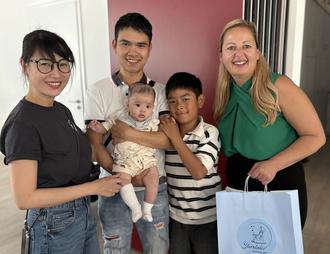 Ein neues Kapitel beginnt: Mama Hoang Trang mit Papa Vo Van Luc, dem großen Bruder Giaan Vo und dem kleinen Giahuy Vo aus Sandersdorf. Steffi Syska gratuliert herzlich.