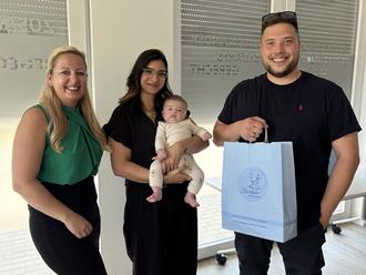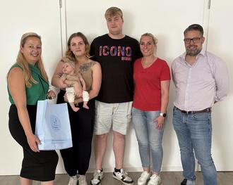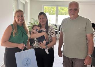 Julius ist da! Mama Sara wird begleitet von Bürgermeisterin Steffi Syska und Mario Willer – Papa Konrad freut sich schon auf viele unvergessliche Papa-Momente.