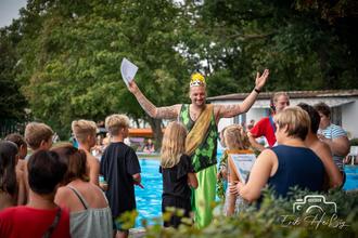 Die KiTa „Villa Kunterbunt“ eröffnete das bunte Bühnenprogramm, gefolgt von den Minis des Roitzscher Carnevalvereins. Mit 26 Anmeldungen zum Arschbomben-Wettbewerb ging es dann weiter. Alle Teilnehmer (im Alter von 6 – 47 Jahre) gaben ihr Bestes, und versuchten, ihre Arschbombe möglichst bis zum Jury-Tisch spritzen zu lassen.