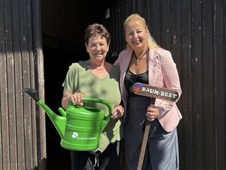 Als Dankeschön für ihr Engagement überraschte Bürgermeisterin Steffi Syska Frau Lindenhahn mit einem Pralinenkasten und dem offiziellen „Baumbeet-Schild“. Dieses möchte sie noch in Zscherndorf an ihrem Beet anbringen – als Motivation für die zukünftigen Bewohner des Hauses, die Pflege fortzuführen. „Vorher bringe ich das Beet aber noch einmal richtig auf Vordermann“, verspricht sie. Die städtische Gießkanne dagegen nimmt sie mit – in der Hoffnung, bald auch in Sandersdorf wieder ein Beet in neuer Frische erblühen zu lassen.