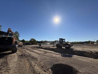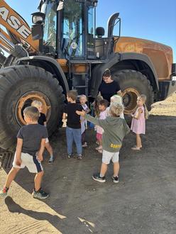 Die Kinder haben sich die riesigen Baufahrzeuge angeschaut.