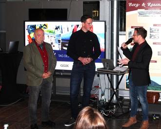 Talk unter Glas - Ein Gespräch unter Generationen - Moderator Stephan Baier stellte vor: Mit seinen 24 Jahren ist Marcus Kandel (B. m.) aus Lengefeld jüngster Ortswehrleiter (seit 22. September) ever! Es dürfte wohl schwer sein, einen noch jüngeren als ihn auf einer solchen Position im Land zu finden. Sein Leben ist die Feuerwehr, mit zehn Jahren trat er in die Jugendfeuerwehr in seinem Heimatort ein. Und seit dem drehte sich bei Feuerwehrmann Kandel fast alles um Einsätze, Ausrüstung oder Löschwagen. Wie die allermeisten anderen Feuerwehrleute, geht auch Marcus Kandel einer hauptberuflichen Tätigkeit nach. Er ist Lokführer im Güterverkehr und deswegen überall in Deutschland unterwegs. Marcus Kandel ist bekannt für seine Grundruhe - Hier und da bekommt er Ratschläge von älteren Feuerwehrleuten, die er gern annimmt.