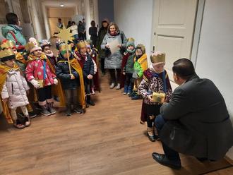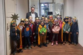 Die Sternsinger der Kita Sankt Martin besuchten am 7. Januar 2025 das historische und das neue Rathaus und hatten neben traditionellen Liedern auch den Haussegen "20*C+M+B+25" im Gepäck.
