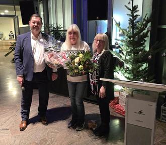 Christel Sommerfeld (Mitte) wurde von der Leiterin der Sangerhäuser Tafel, Manuela Röhnisch für ihren Einsatz geehrt.