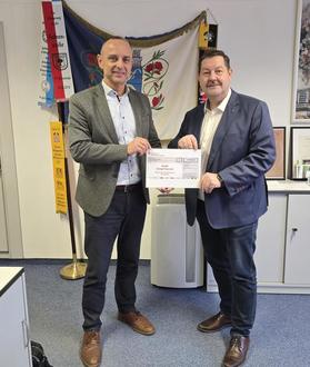 Herr Reitzenstein von der Sparkasse Mansfeld-Südharz übergab einen Scheck in Höhe von 5.000 € an Oberbürgermeister Torsten Schweiger zur Förderung der Modernisierung und Reparatur unserer Spielplätze.