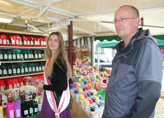 Um es gleich vorweg zu nehmen: Es waren deutlich mehr Händler, aber auch mehr Besucherinnen bzw. Besucher bei strahlendem Sonnenschein auf dem Sangerhäuser Traditionsmarkt. Mit dem diesjährigen Motto der Tag der Regionen: „... wurzeln in einer globalisierten Welt“, hat die Rosenstadt Sangerhausen GmbH und das Biosphärenreservat Südharz am 8. Oktober zum 17. Südharzer Regionalmarkt nach Sangerhausen auf den Marktplatz eingeladen. Angeboten wurden die Vielfalt des Mansfelder Landes, des Südharzes und des Kyffhäusers durch typische Produkte aus der Region. An den verschiedenen Informationsständen ist zudem Interessantes zu Kultur und Natur des Südharzes zu erfahren gewesen. 27 regionale Erzeuger, Handwerker und Dienstleister aus dem Mansfelder Land, dem Südharz und dem Kyffhäuser präsentierten ihre Qualitätsprodukte. Pünktlich um 11.00 Uhr gab es den traditionellen Rundgang mit Oberbürgermeister Sven Strauß und Rosenprinzessin Emily I.