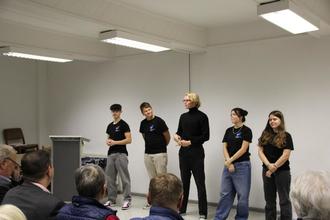 Begleitet wurden die Vereinsmitglieder durch fünf Schülerinnen und Schüler der Theatergruppen des Geschwister-Scholl-Gymnasiums, die einen selbsterstellten Film über das Leben Einar Schleefs präsentiert hat. Dieser brachte den Anwesenden ebenfalls einige Einblicke in die verschiedenen Projekte der Theatergruppe rund um die Werke des Sangerhäuser Künstlers.