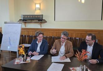 Gemeinsam mit Christiane Beyer (stellv. für Landrat André Schröder) und Peter Panitz (Geschäftsführer der NASA GmbH) wurde die Vertragsverlängerung offiziell besiegelt.