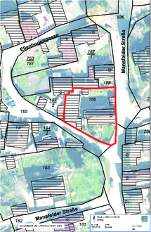 Die Erschließung erfolgt von der östlich gelegenen Mansfelder Straße aus, durch ein Tor ist eine Befahrung möglich. Das Grundstück ist mit einem denkmalgeschützten Fachwerkhaus aus dem 17. Jahrhundert sowie Nebengelass bebaut und vollständig von Mauern bzw. Gebäuden umschlossen.