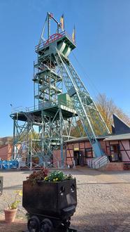 Im Rahmen einer kurzen geführten Wanderung kann die Förderanlage des Schachtes Junger Adolph besichtigt werden, der als Not- und Wetterschacht für den Röhrigschacht genutzt wird.