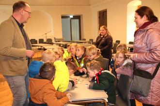 14 wissbegierige Vorschulkinder und ihre beiden Erzieherinnen aus der Kindertagesstätte „St. Martin“ waren am 20. Februar zu Besuch bei Oberbürgermeister (OB) Sven Strauß.