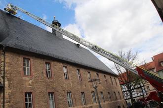 Zur Installation der neuen Sirenenanlage wurde die Drehleiter der Freiwilligen Feuerwehr Sangerhausen am 24. und am 25. April als "Bauhelfer" eingesetzt.