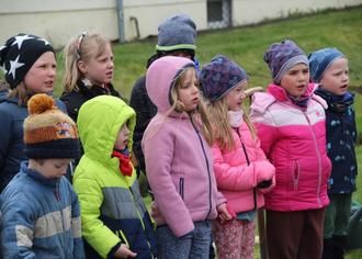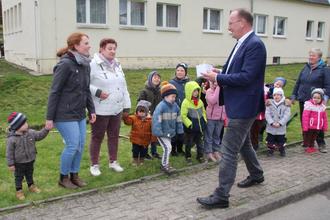 Nach der Begrüßung der Gäste durch die Ortsbürgermeisterin, zeigten die Kleinsten aus dem Spatzennest, was sie zum Thema Baum und April bereits alles schon können. Dafür gab es vom OB natürlich ein kleines Dankeschön.
