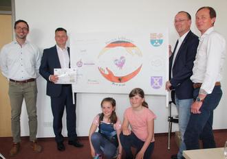 Freuen können sich auch die Kinder des Hortes der Novalis-Grundschule in Hettstedt. Sie haben den Plakatwettbewerb gewonnen, der seitens des Landkreises, der Stadt und des KSB ausgelobt worden war. Gefragt war ein Willkommensplakat für die Begrüßung der Delegation am Flughafen. Die Jungen und Mädchen kreierten ein buntes Plakat, dass jetzt prämiert wurde und am 12.06.2023 dann in Berlin präsent sein wird. Stellvertretend für die Hortgruppe haben Tamara und Lotta (B.o.l.), beide 9 Jahre alt, das Siegerplakat präsentiert.