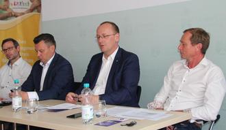 Im Pressegespräch: Alexander Viehmann, Geschäftsführer KSB, Landrat Andrè Schröder, Oberbürgermeister Sven Strauß und Fachbereichsleiter Sven Vogler, Landkreis (v.l.)