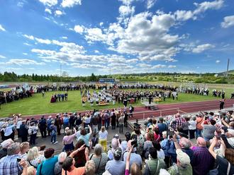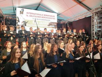 Anschließend stimmten sich alle Gäste bei ausgelassener Atmosphäre im Friesenstadion auf die Internationale Bergparade ein. Das Kyffhäuserland-Orchester und der Chor des Geschwister-Scholl-Gymnasium sorgten mit bergmännischer Musik für gute Stimmung.