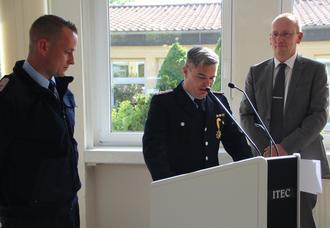Die Wahl zum Stadtwehrleiter hat Herr Arno Kalina für sich entschieden, stellvertretender Stadtwehrleiter ist Falco Heise und stellvertretende Stadtwehrleiterin Diana Kalina. Herr Kalina (B. m.) und Herr Heise (B. l.) erfüllen sämtliche rechtliche Voraussetzungen zur Berufung als Stadtwehrleiter bzw. als stellvertretender Stadtwehrleiter. Frau Kalina (nicht auf dem Foto) erfüllt mit dem erfolgreich absolvierten Lehrgang zur Verbandsführerin nur teilweise die rechtlichen und fachlichen Voraussetzungen zur Berufung. Den Lehrgang "Leiter einer Feuerwehr" wird diese innerhalb der nächsten zwei Jahre auf Landesebene nachholen.