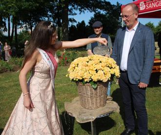 In der Farbe Gold ging es auch am 17. Juni im Rosarium weiter. Anlässlich des 120. Jubiläums des Europa-Rosariums tauften Oberbürgermeister Sven Strauß und Rosenprinzessin Leni I. eine neue Rose.