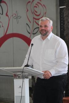 Sven Strauß begrüßte 40 Gäste, die aus einem ganz bestimmten Grund am letzten Wochenende in unserem Europa-Rosarium verweilten. Anlässlich des 120-jährigen Jubiläums des Rosariums hat die Stiftung EUROPA-ROSARIUM SANGERHAUSEN der Deutschen Rosengesellschaft e.V. sowie der Förderverein „Freunde des Rosariums e.V.“ zu einem Treffen von Rosengärten Deutschlands eingeladen. Gemeinsam mit den Vertretern von zahlreichen Rosengärten und Rosenzüchtern in Deutschland haben sich die Rosenexpertinnen- und experten im Rahmen von Diskussionen und Vorträgen mit dem derzeitigen Stand der Erhaltung von Rosengärten beschäftigt. Stellvertretend für alle wurden die Präsidentin der Deutschen Rosengesellschaft, Frau Dr. Renate Neumann-Schäfer und der Vorsitzende der Stiftung, Dr. Hans Schreiber begrüßt. "Als Oberbürgermeister dieser Stadt möchte ich Sie, sehr geehrte Rosenliebhaberinnen- und Rosenliebhaber, ganz herzlich willkommen heißen."