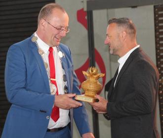 Und auch dieses mal gab es wieder Unterstützung von "Draußen". Danke dafür Frau Rohde! "Wenn ich an die Person denke, die gleich die Auszeichnung erhält, sehe ich eine sympathische, bodenständige Person, die neben seiner Familie ein absolut intensives weiteres Hobby hat, nämlich den Sport - vorrangig den Fahrradsport. Egal, wann man Herrn Rohde im Status verfolgt: Zu 90 Prozent ist er mit seinem Rad on Tour. Und das deckt sich wunderbar mit seinem ehrenamtlichen Engagement. Fest steht: Die Sangerhäuser Radball-Geschichte wurde durch und mit ihm im April dieses Jahres weitergeschrieben, als das 2. Radball Weltcup-Turnier des Jahres ausgetragen und einige der besten Radballer der Welt in unserer Stadt zu Gast waren. In der Radballsportwelt ist sein Name Programm - aber auch im Kreissportbund Sangerhausen e.V. hat er fast zwei Jahrzehnte deutlich Spuren hinterlassen. Erst in 2022 hat Herr Rohde nach vielen Jahren, den Vorsitz des Radsportvereins an den "Radballnachwuchs" übergeben. Und selbstverständlich arbeitet er weiterhin im Vorstand, denn ganz ohne geht es bei ihm eben nicht", so Sven Strauß in seiner Laudatio. 2014 und 2016 hat er selbst den Weltcup gespielt. Mit dem diesjährigen UCI Cycle-Ball World Cup zeichnet er bisher für 7 Veranstaltungen mit verantwortlich. Sangerhausen gehört mittlerweile weltweit zu den Top-sechs Austragungsorten der über 20-jährigen Radball-Weltcuphistorie, so der Landesverband Radsport. Ein Mitverdienst von Karsten Rohde. Für sein ehrenamtliches Engagement erhielt Karsten Rohde 2011 die Ehrennadel des Landessportbundes Sachsen-Anhalt in Silber und am 16. Juni 2023 die "Goldene Rose der Stadt Sangerhausen", die zweit höchste Auszeichnung der Stadt.