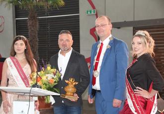 Gemeinsam mit Rosenkönigin Julia II, Rosenprinzessin Leni I. und Ehefrau Beate Strauß, begrüßte Oberbürgermeister Sven Strauß jeden einzelnen Gast persönlich. Und es waren fast 300 Hände, die geschüttelt wurden.