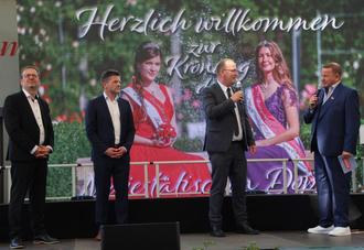 1. Juni 2024: Bei tatsächlich königlichem Sommerwetter und einer voll besetzten Rosenarena, gab es einen Abschied und zwei neue Kronen. Im Rahmen des Berg- und Rosenfestes wurde ein neues Majestätisches Doppel gekrönt.