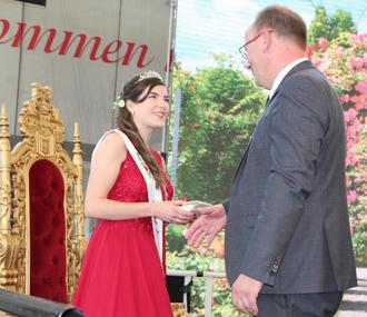 Und natürlich gab es an dem Nachmittag auch einen Abschied, denn Rosenkönigin Leni I. hat mit diesem Tag ihre Amtszeit mit einem lachenden und einem weinenden Auge beendet. Mit dem Soundtrack aus dem Film Forrest Gump, Lenis Lieblingslied, und einer Bilderrückschau der letzten beiden Jahre verabschiedet sie sich von der Bühne. "Ich nehme Abschied von einem wundervollen Ort und ich werde diesen Ort zu jeder Zeit vermissen. Während meiner Amtszeit