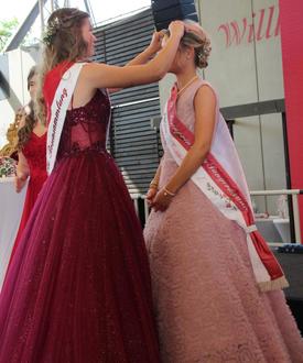 Mit einer feierlichen Zeremonie wurde Emily I. von einer Prinzessin zur Rosenkönigin und "Neuling" Geraldine Herzberg zur Rosenprinzessin Geraldine I. Die 21-jährige Sangerhäuserin ist kein unbekanntes Gesicht in der Stadt. Geraldine ist mit Leni befreundet und daher schon sehr oft in Kognito mit ihr unterwegs gewesen und sie wurde von ihr gut auf dieses Amt vorbereitet.