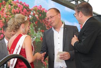 Rund um das Rosarium gab es an diesem Wochenende nicht einen einzigen freien Parkplatz mehr. Die Rosenstadt Sangerhausen hatte letztes Wochenende zum mittlerweile 46. Berg- und Rosenfest geladen, das allein am Samstag über 2.600 Gäste in den Rosengarten gezogen hat. Höhepunkt der Veranstaltung, nicht zum ersten Mal moderiert von Radiomann Holger Tapper, war die Krönung der 21. Rosenkönigin Leni I. und der 11. Rosenprinzessin Emily I.