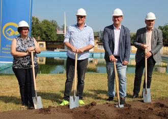 Der offizielle Baustart für das Projekt „Sanierung des Stadtbades Sangerhausen“ wurde mit einem Spatenstich am 28.06. vollzogen. Sowohl Oberbürgermeister Sven Strauß, als auch Bädergesellschafts-Geschäftsführer Olaf Wüstemann haben gemeinsam mit Maria Diebes, Fachbereichsleiterin Stadtentwicklung und Bauen und dem Architekt Markus Pichler zum Spaten gegriffen und damit den Baustart geben. Die Investitionssumme des 1. Bauabschnitts beläuft sich auf 6,9 Millionen Euro.