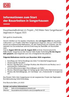 Anwohnern an der Zugstrecke Sangerhausen – Halle, denen ein Besuch der Informationsveranstaltung der Deutschen Bahn am 24.07.2025 nicht möglich war bzw. hierüber nicht Information erlangen konnten, soll zur Kenntnis gegeben werden:
