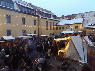 Ein besonderer attraktiver Bereich war wieder der Mittelaltermarkt auf dem Schlosshof. Dabei bildete das historische Ensemble des Herzogschlosses das passende Umfeld. Mit dem speziellen Warenangebot, Feuerkörben, Sitzgelegenheiten und den Programmeinlagen, wie Mittelaltermusik oder Feuershow, hob sich dieser Veranstaltungsbereich natürlich optisch wie inhaltlich zwar vom eigentlichen Christkind`l-Markt ab, bereicherte diesen dadurch aber auch wesentlich. Viele Gäste äußerten sich positiv darüber. Mit der Ausstellung der „Lauchstädter Kreativen“ in der Begegnungsstätte Alte Remise wurde zudem noch ein weiterer gern angenommener Programmpunkt während der drei Tage vorgehalten. Hierfür geht nochmals der Dank an alle ehrenamtlich tätigen Künstler unserer Goethestadt für ihr Engagement.