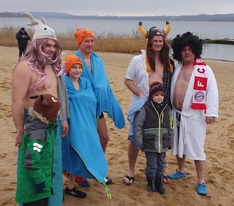 Viele Eisbader kamen in bunten Kostümen zum Anbaden