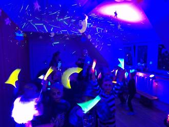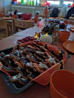 Kleine Hexen, unheimliche Skelette, geheimnisvolle Vampire, zauberhafte Wesen und gruselige Gespenster trieben ihr Unwesen in den Fluren und Gruppenräumen. Aus allen Ecken erklangen gruselige Töne und schaurig-schöne Lieder, begleitet von bunten Lichtern und leuchtenden Glühwürmchen, die die Räume in ein magisches Licht tauchten.