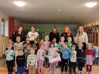 Frau Pfeiffer bei der Übergabe der Zuwendung in der Dino-Gruppe