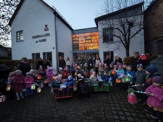 Die selbst gebastelten Laternen der Kinder erhellen so langsam die Dunkelheit