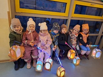 Doch zuvor wollten wir erst einmal wissen, wer war eigentlich der „Heilige Martin“ und warum begehen wir diesen Tag im November. Unser Wissensdurst wurde schnell gestillt und voller Vorfreude ging es an das Basteln der Holzlaternen. Alle Kinder probierten sich aus und gestalteten ihre Laternen mit Bastelmaterialien, Eifer und viel Fantasie. Als sich am Ende der Lichterwoche alle Kinder und Erzieherinnen vor der Kita zum Umzug sammelten, waren die Emotionen über den wundervollen Augenblick für alle greifbar und dieser Gänsehautmoment machte uns alle gemeinsam richtig glücklich.