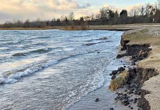 Stürme tragen Strand am Uferbereich in Frankleben ab