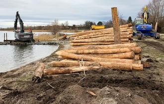 Nach Fertigstellung der restlichen Buhnen erfolgt die Neuprofilierung des Uferbereichs, wobei auf einer Fläche von 4.500 Quadratmetern neben den vorhandenen Erdstoffen ca. 2.000 Tonnen neuer Kies eingebaut werden.