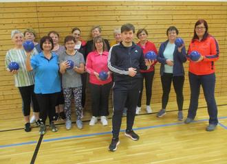 Übergabe der Gymnastikbälle an die Klobikauer Frauen-Sport-Gruppe