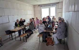 Kaffeerunde im Rohbau vom Hospiz Hoffnungsland
