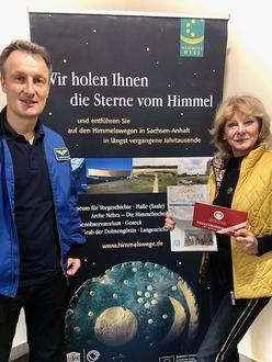 Der Astronaut begegnet mir plötzlich, wie aus dem All, mit großer Freude im Museum für Vorgeschichte in Halle (Saale). Sofort ergibt sich ein interessantes Gespräch über seine Mission „COSMIC KISS“ sechs Monate auf der ISS. Eine Liebeserklärung an den Weltraum! (so auch sein Buch). Freudig erzähle ich von meiner Heimatstadt, der Goethestadt Bad Lauchstädt. Wir plaudern über Goethe, Schiller und Wagner. In eigener Mission überreichte ich dem sympathischen Weltraumfahrer den Goethestadt-Kurier und das Heft der Historischen Kuranlagen und Goethe-Theater Bad Lauchstädt, samt Einladung: „Ich wollte, Sie hätten Lust und Muth, ...“ Es ruft zur Pressekonferenz.