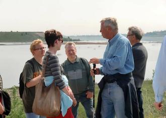Reinhard Hirsch mit Touristen auf Exkursionstour am Geiseltalsee
