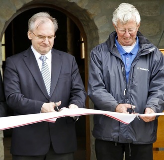 Ministerpräsident Reiner Haseloff und Reinhard Hirsch bei der Einweihung der europäischen Begegnungsstätte der Kulturen